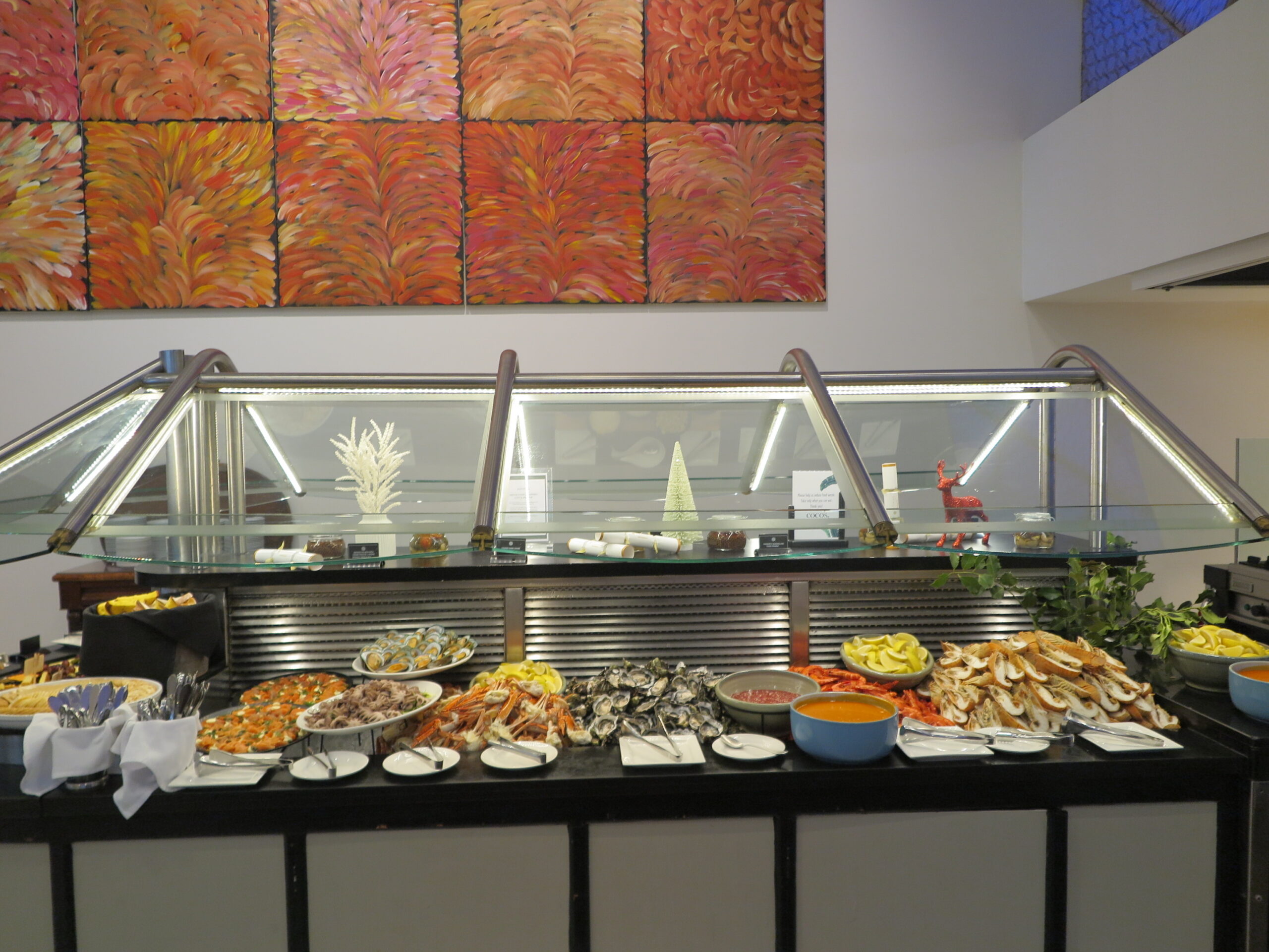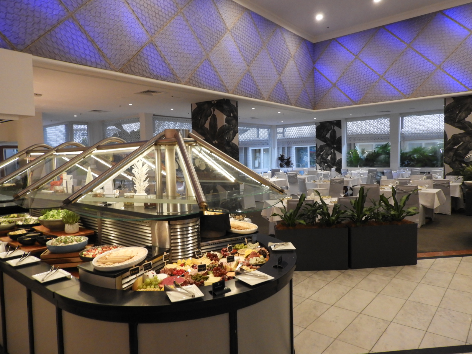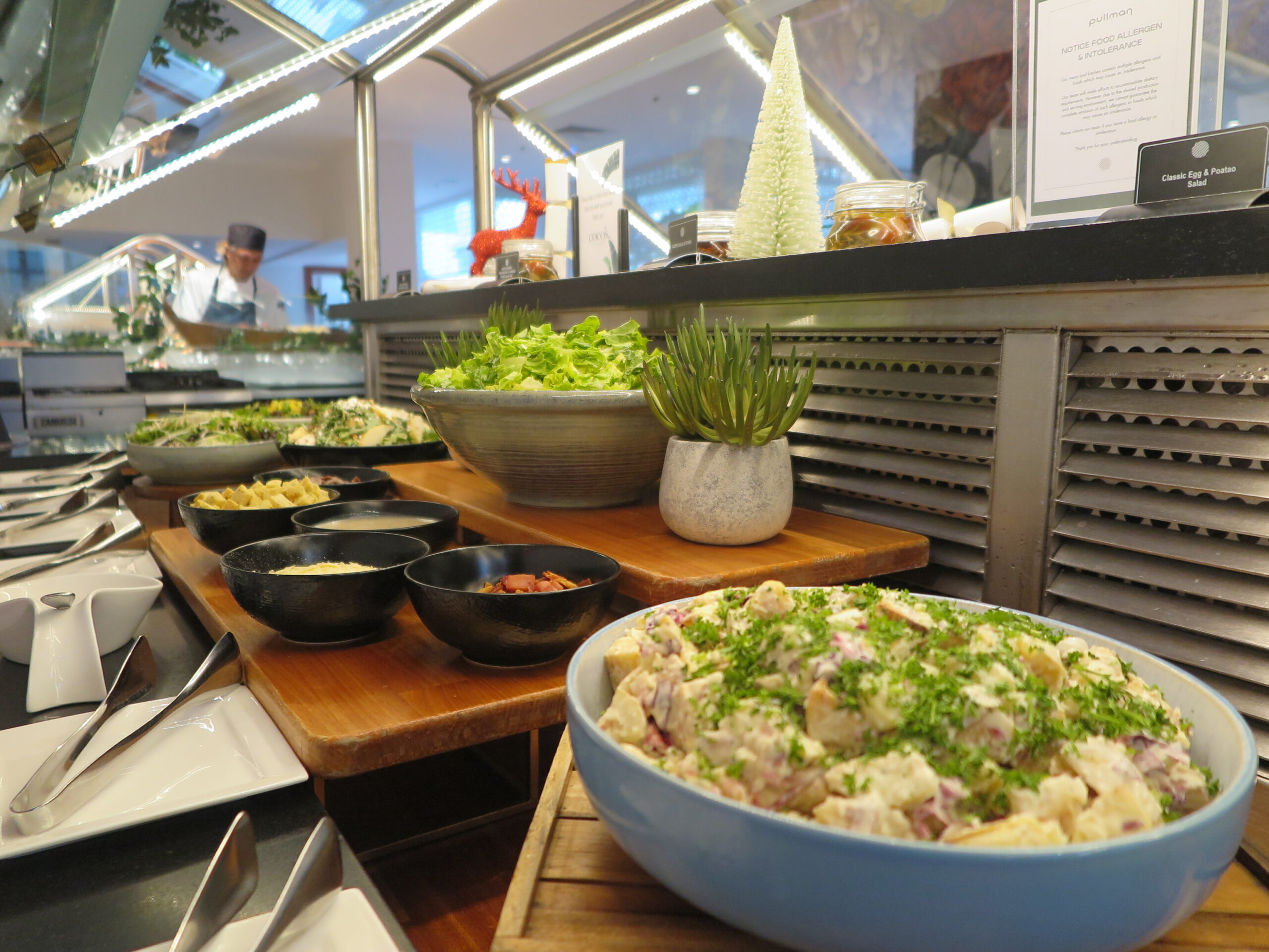From the hot buffet, enjoy macadamia-crusted barramundi with finger lime beurre blanc, mustard and pink peppercorn crusted striploin, classic pork shoulder with crackling, and comforting seasonal favourites.