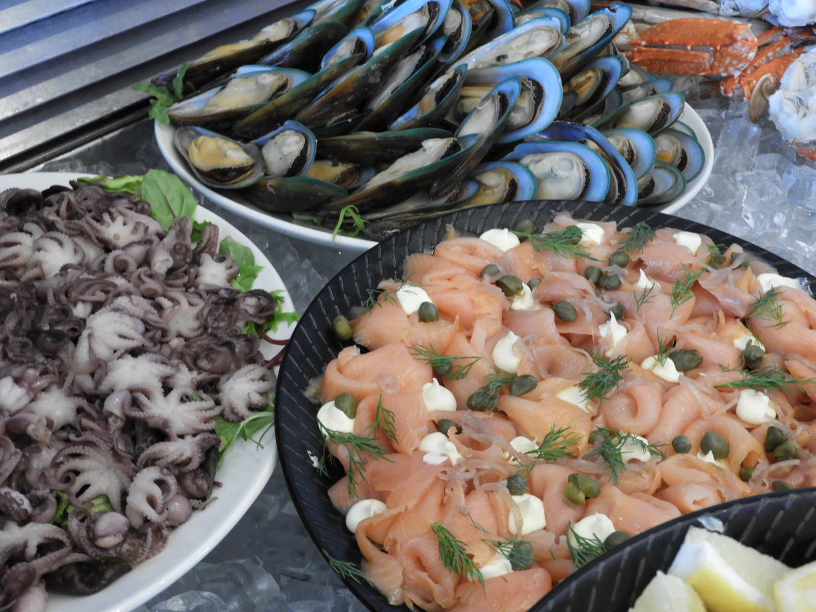 • Freshly shucked oysters, tiger prawns, sand crab & more